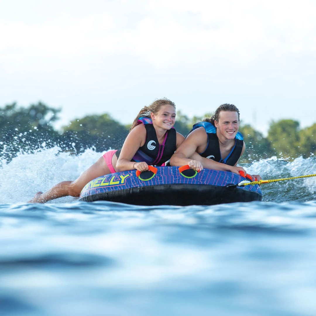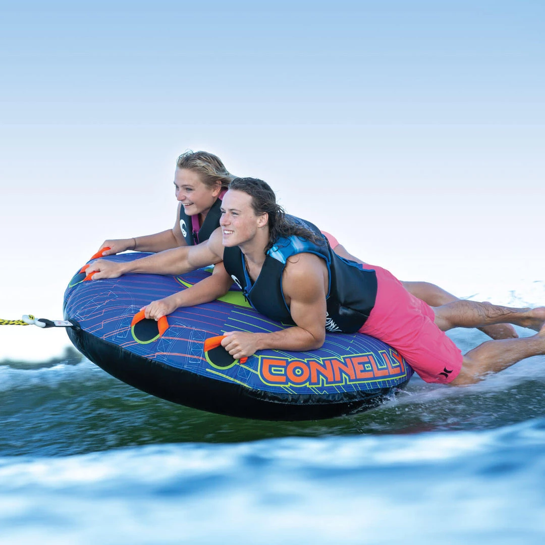 Connelly tubes were invented for extreme fun, uncontrollable laughter and action-packed summers. This two-personal towable tube was built with a heavy duty 420D Nylon cover and padded handles for the most extreme action on the water.