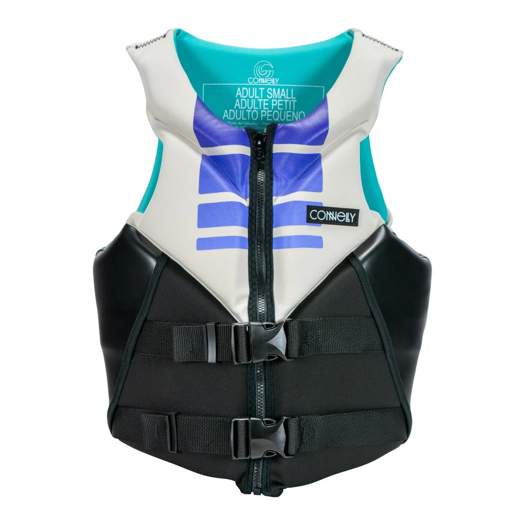 The Aspect Neo vest for women is US Coast Guard approved and features a center zip design and a new double “V” back flex panel.