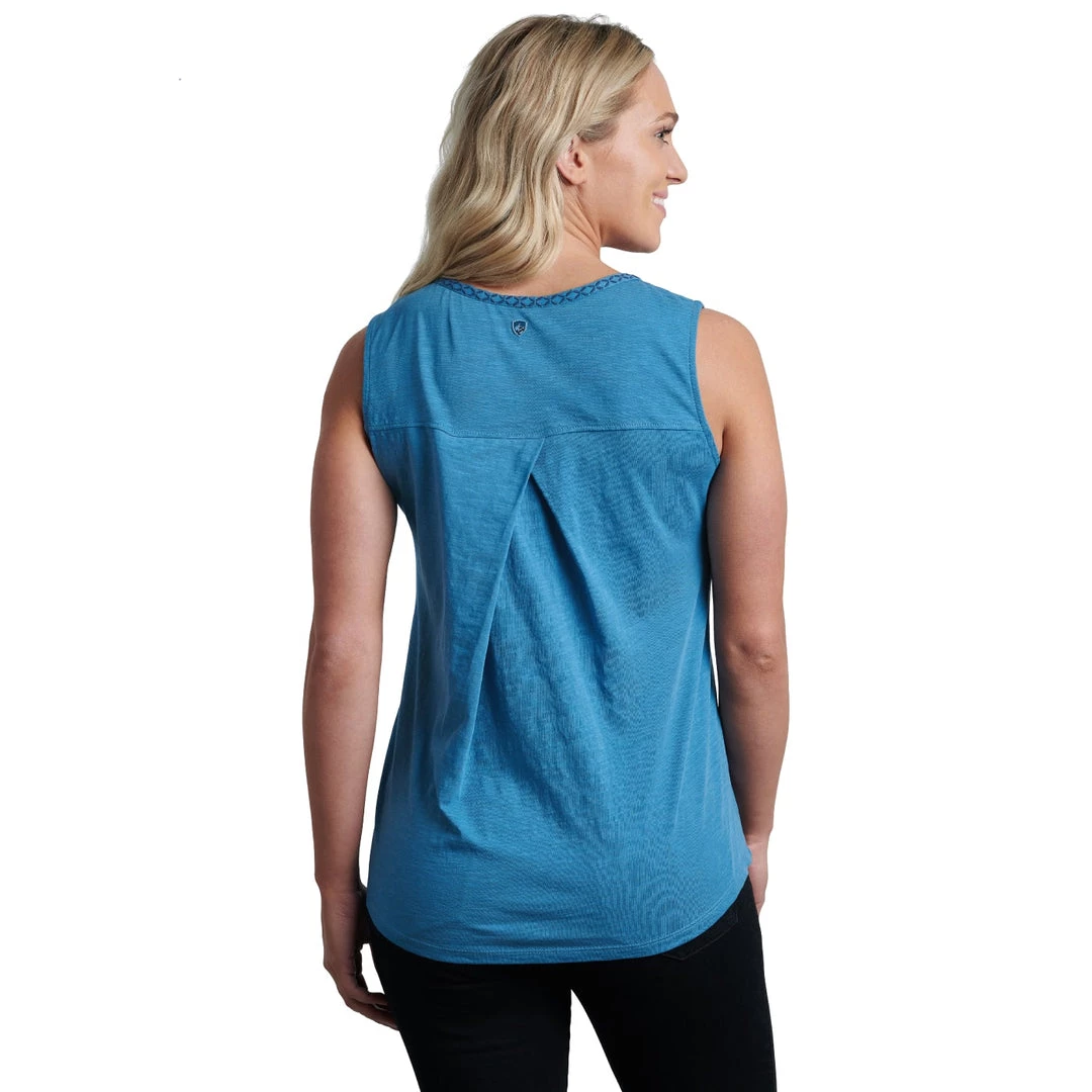 The KรHL SHAYโขย Women’s Tank features Wildfibreโขย 100% Organic Cotton. Luxuriously soft, durable, and highly breathable, this superior cotton pampers you in comfort. Custom embroidery and a crossover pleat add stylish details to this must-have summer top.ย