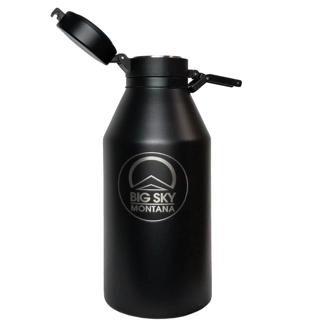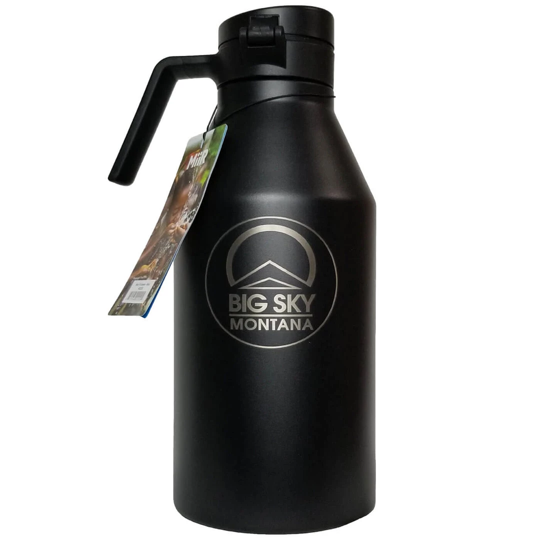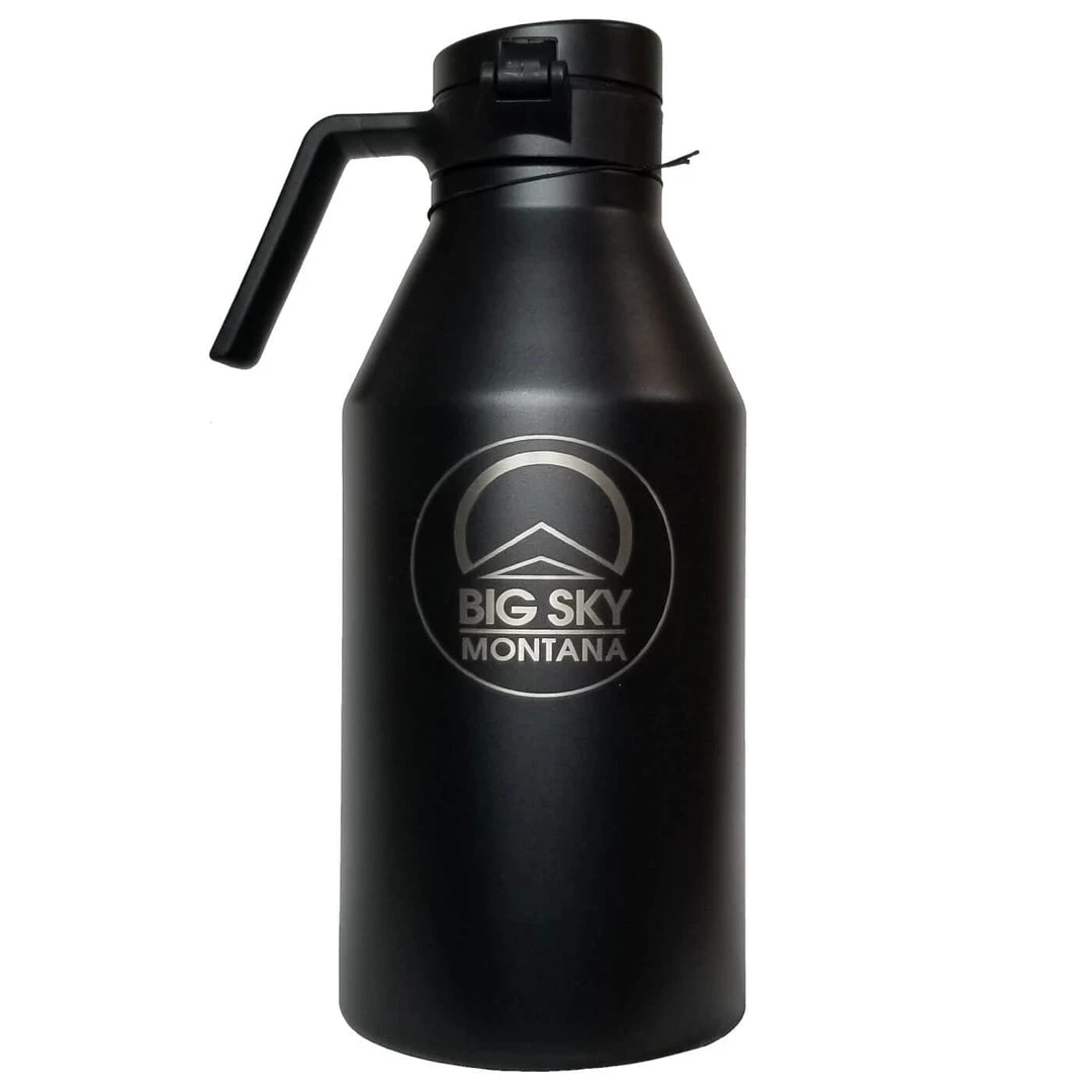 Best in class Thermo 3D Double Wall vacuum insulation eliminates condensation and keeps hot stuff hot and cold stuff cold in the Miir 64 oz Growler. Hard-shell powder Coating on colored growlers adds grip, protects and preserves your product’s appearance and Montana’s Big Sky logo front finish.Â