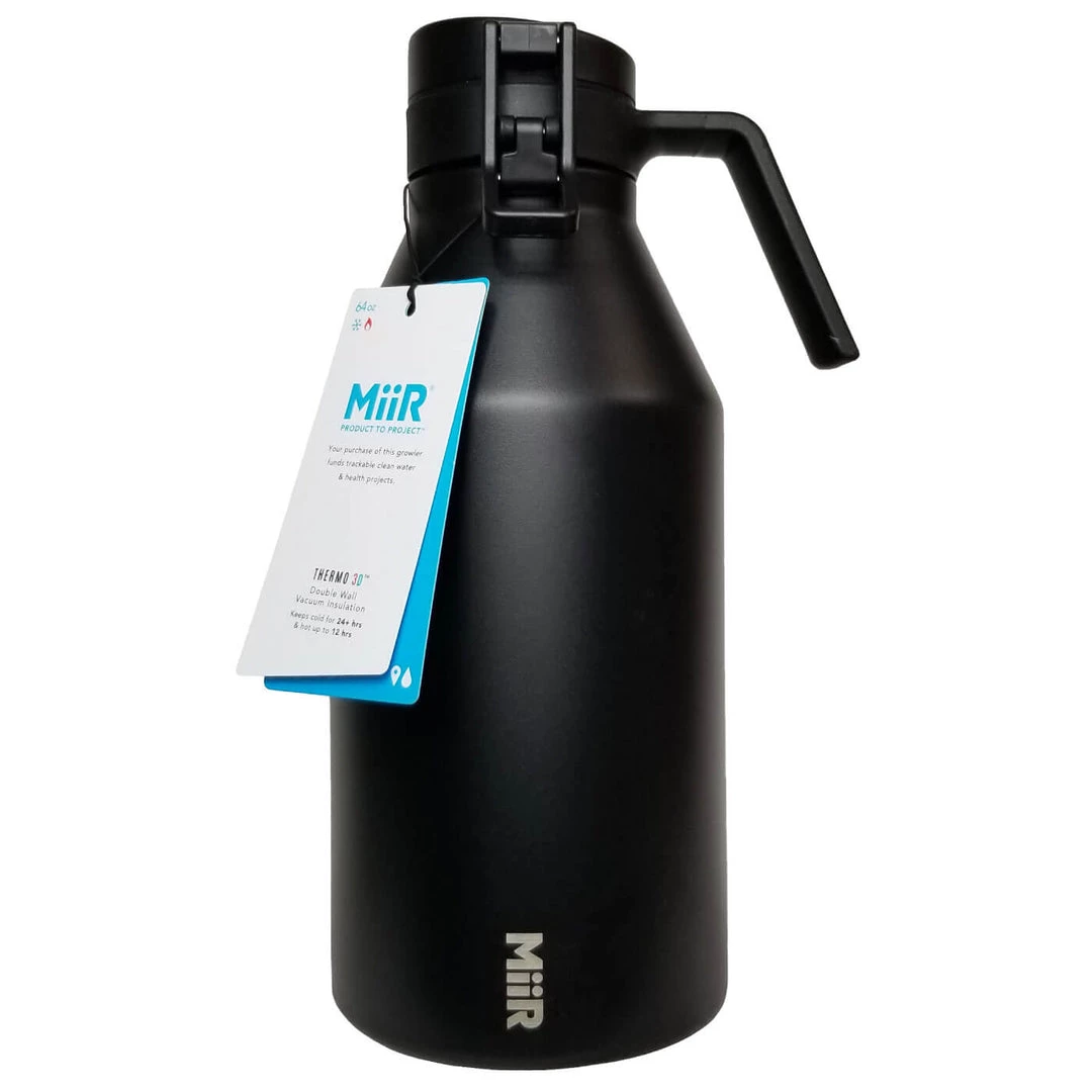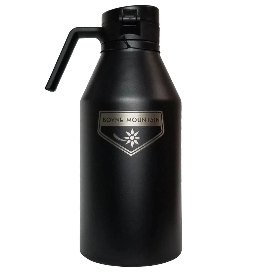 Best in class Thermo 3D Double Wall vacuum insulation eliminates condensation and keeps hot stuff hot and cold stuff cold in the Miir 64 oz Growler. Hard-shell powder Coating on colored growlers adds grip, protects and preserves your product’s appearance andย Michigan’s Boyne Mountain logo front finish.ย