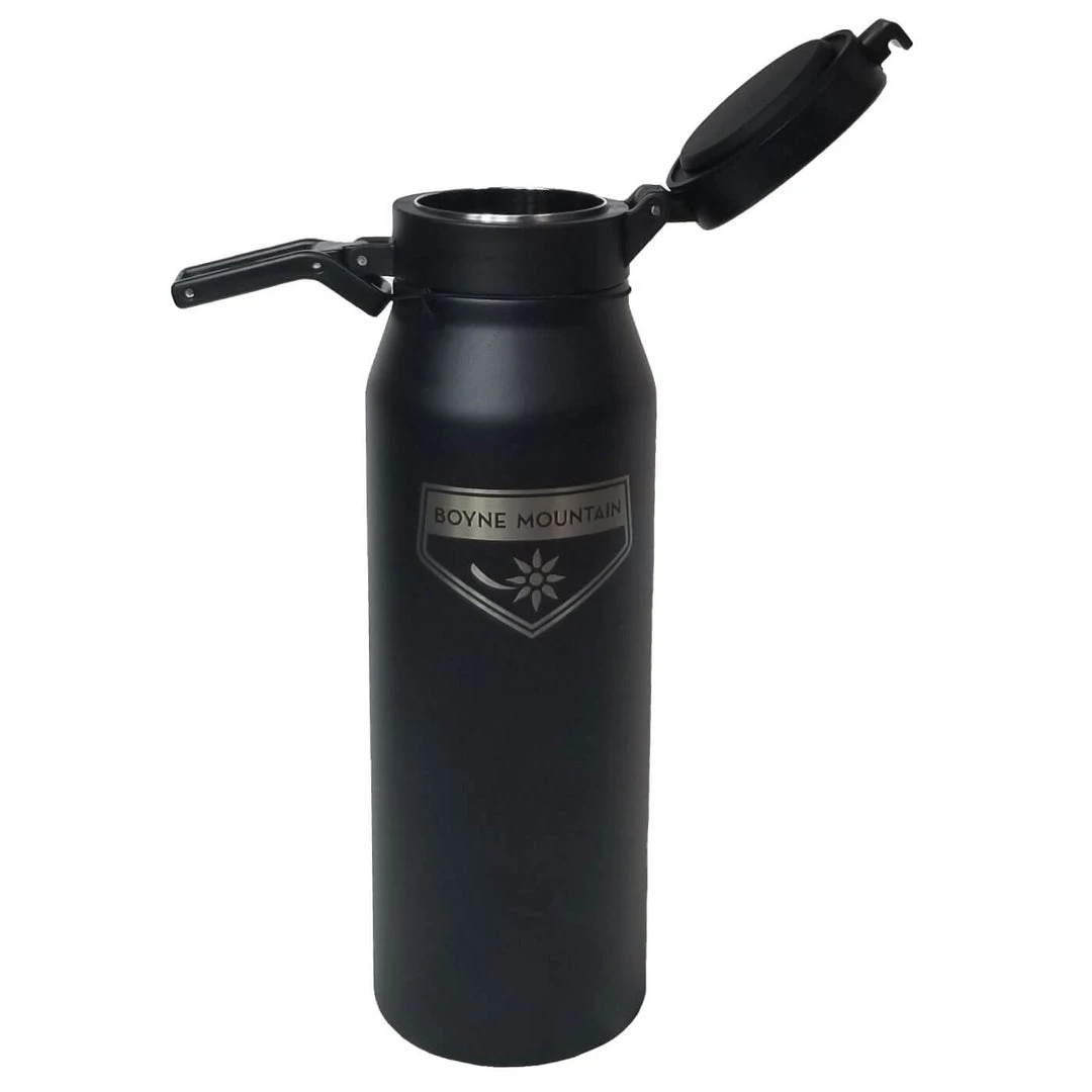 Transport more than just beer in this classic Howler made by Miir and featuring the Boyne Mountain Logo. Whether looking to seal in carbonation or not, this Thermo 3D® double wall vacuum insulation technology keeps your beverage at the ideal temperature for hours. When you’re ready to pour, an intuitive hinge on the lid locks in place when open.