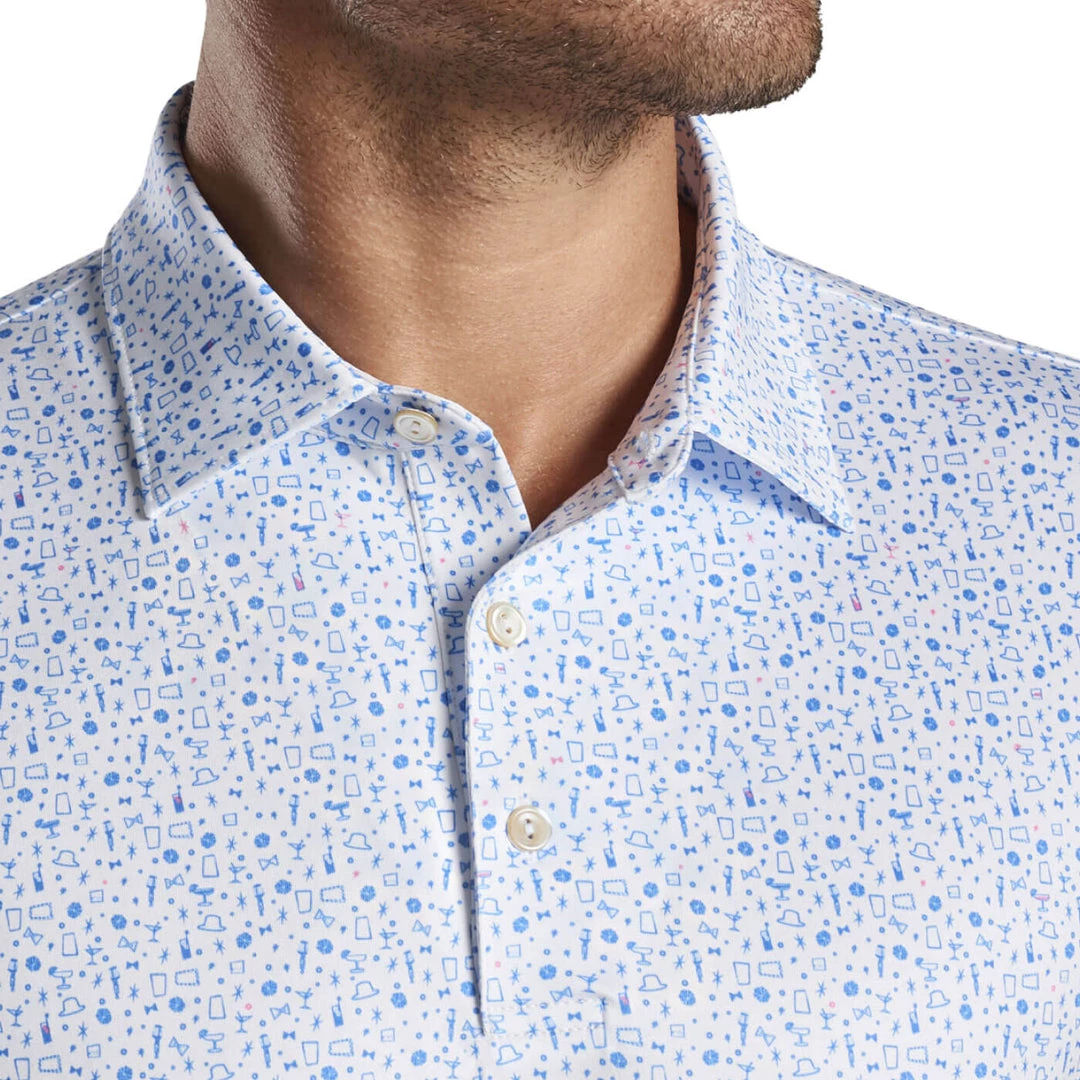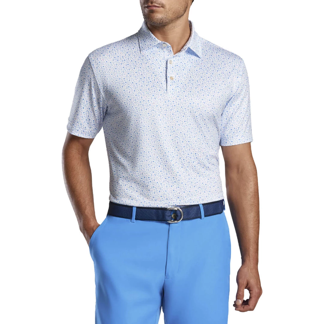 This polo offers sharp style and technical performance that make it a staple in any wardrobe. It’s constructed using a lightweight, easy-care jersey fabric that wicks moisture and stretches four ways for optimal mobility on and off the course. Innovative UPF 50+ sun protection delivers added coverage for long days spent outside. A seasonal novelty design offers a unique touch. Finished with a Sean self-fabric collar and three-button placket.