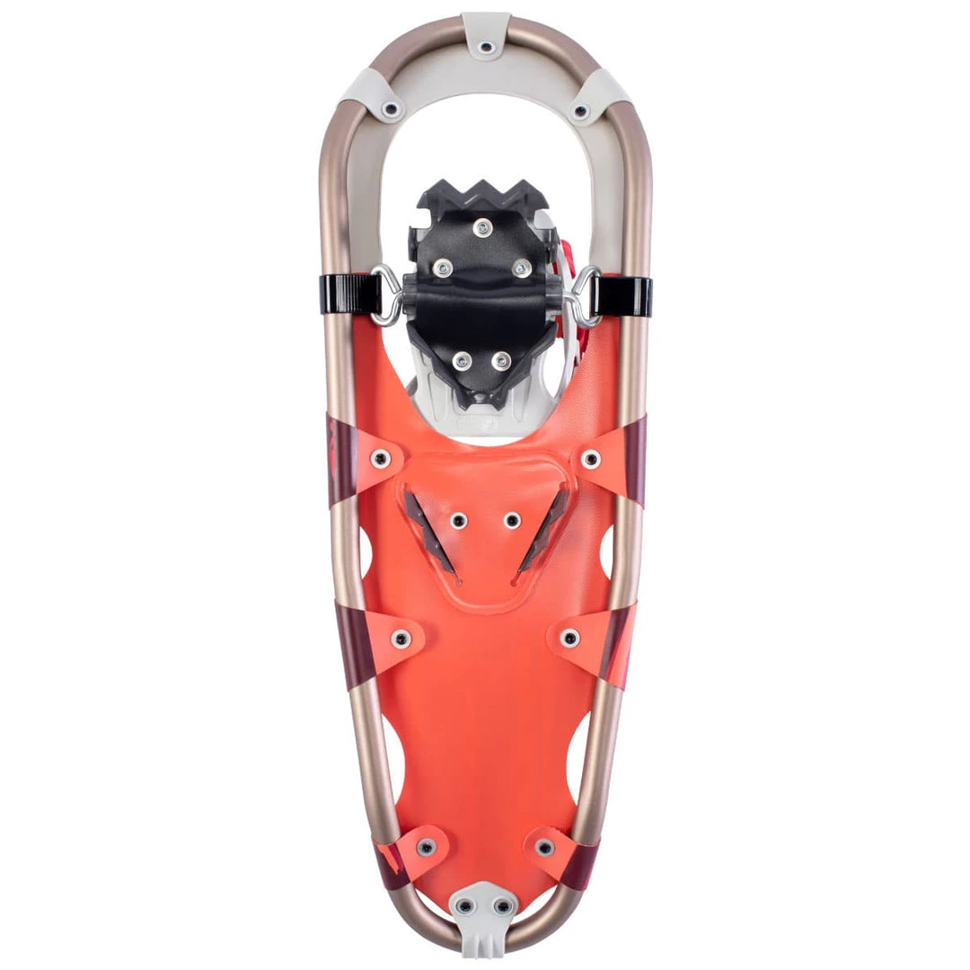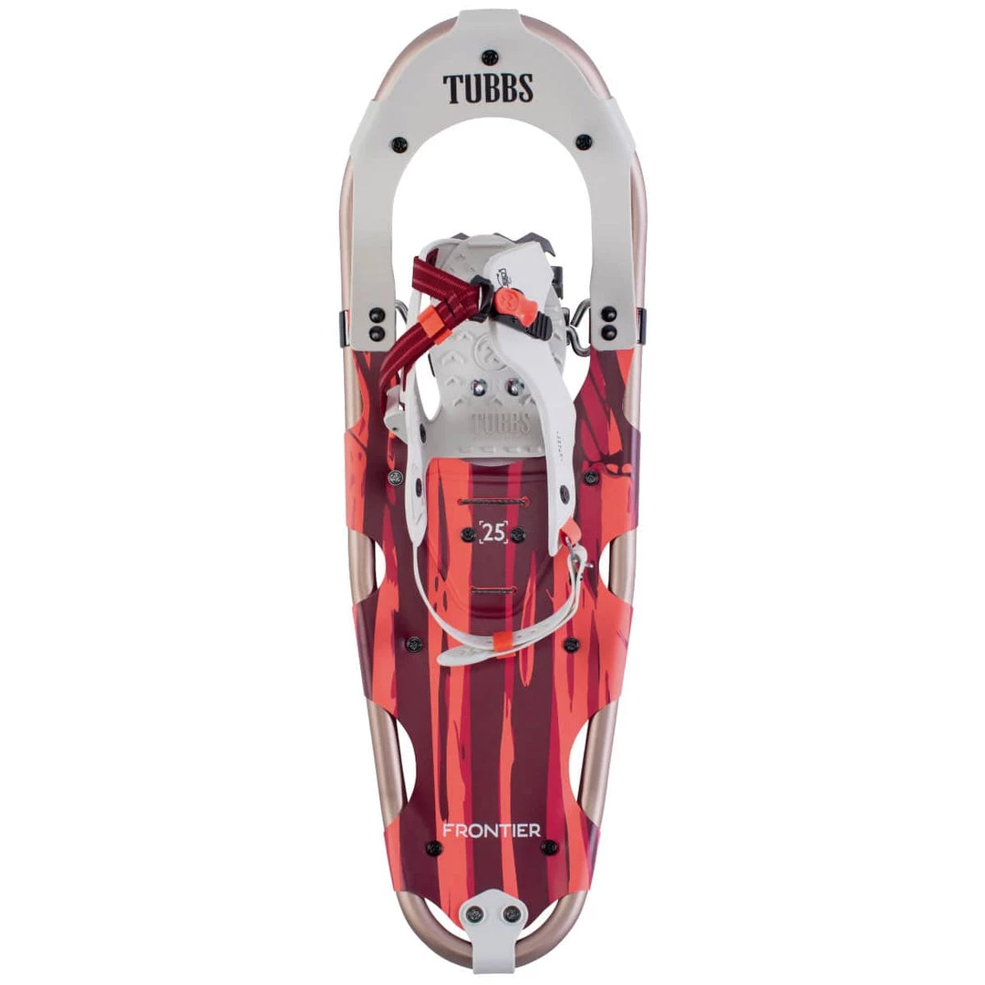 A truly classic snowshoe in every sense! The Frontier has been a staple of the Tubbโs Trail Walking category for years, and things are only getting better. This season brings a new look for the Frontier with eye-catching modern styling and colors (including a sleek, blacked-out version). The streamlined 180โข EZ binding makes entry and exit a breeze with a single buckle tightening mechanism, while Control Wingsโข and a heel strap provide efficient, lightweight support. The minimalist design of the Frontier delivers efficient performance on packed trails thanks to the aluminum Fit-Stepโข frame and SoftTecโข decking. Whether youโre a budding snowshoer or just looking to take on less intense trails and hikes, the Frontier has everything you need for your next winter excursion.