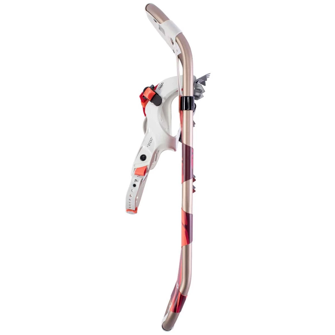 - ROTATING TOE CORD ARTICULATION SYSTEM: The Rotating Toe Cord design enables the tail of the snowshoe to drop, shedding snow off the tail. When weighted, the teeth on the toe traction underfoot bite deeply into the snow.