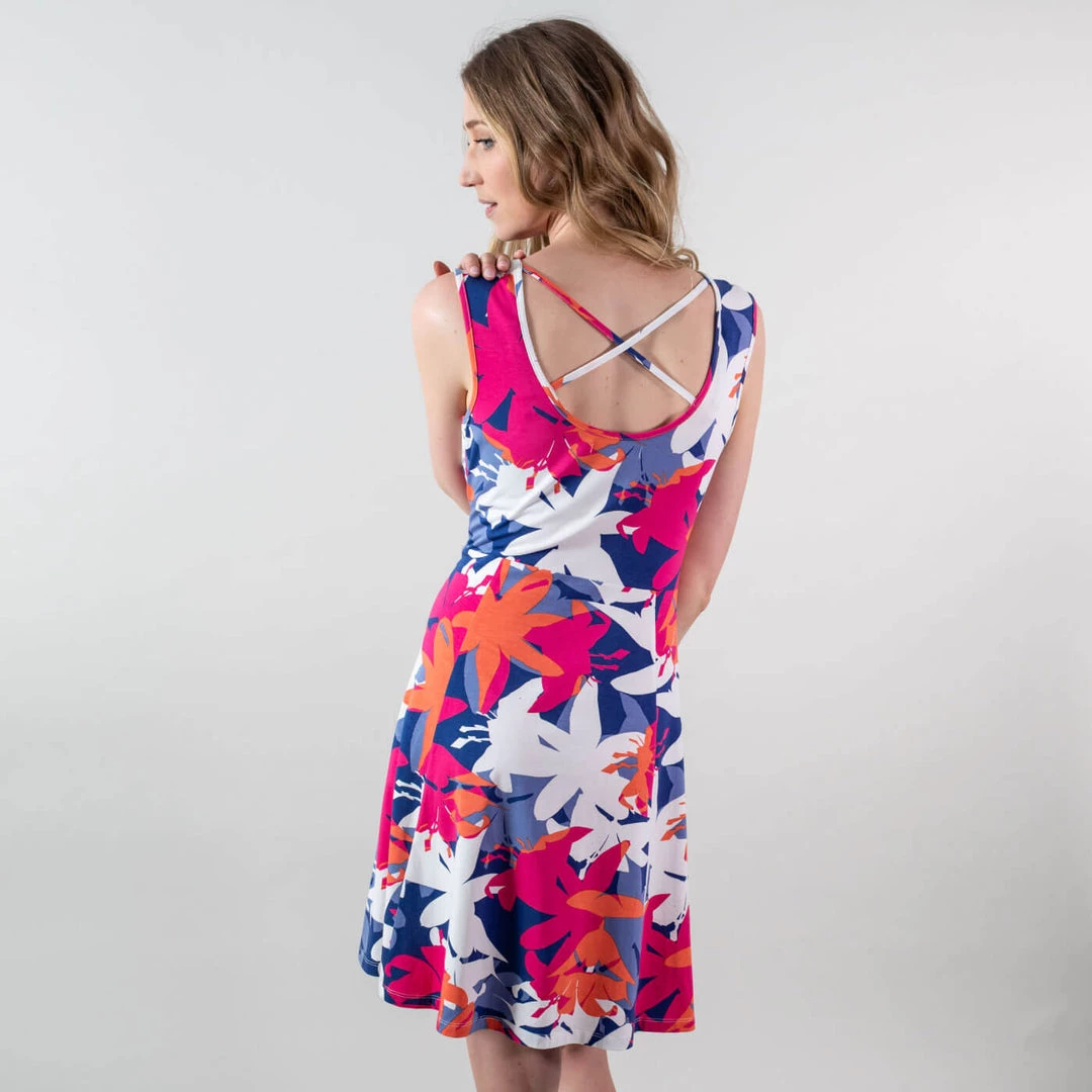 - Open back with criss cross strap detail