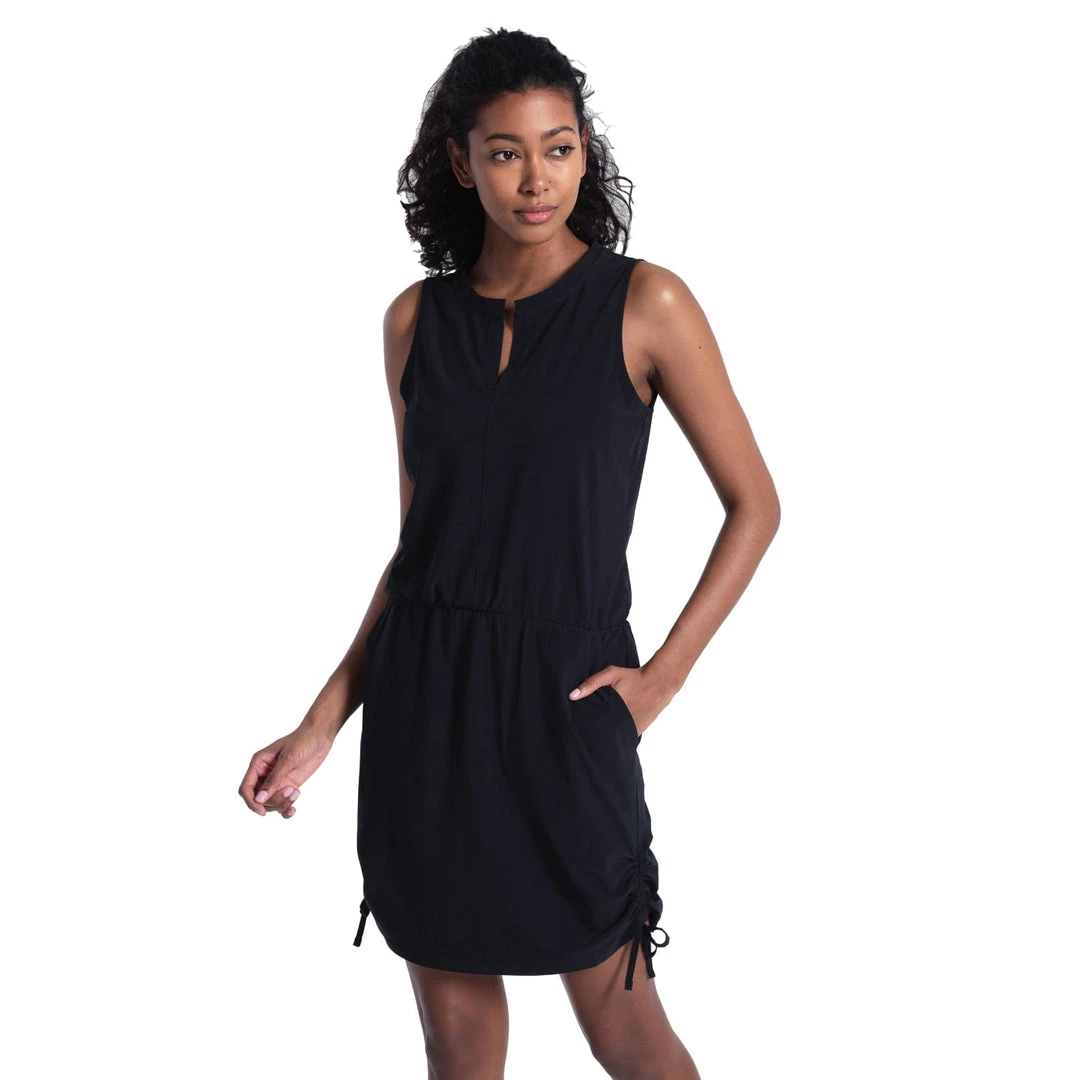 Stay cool while looking effortlessly chic in this easy-fit summer dress that’s so comfortable you’ll want to wear it every day. This casual dress is designed with an elastic waist, side pockets, and adjustable side seams that that not only shorten or lengthen the dress, but also create an on-trend ruched detail and bows at the sides.