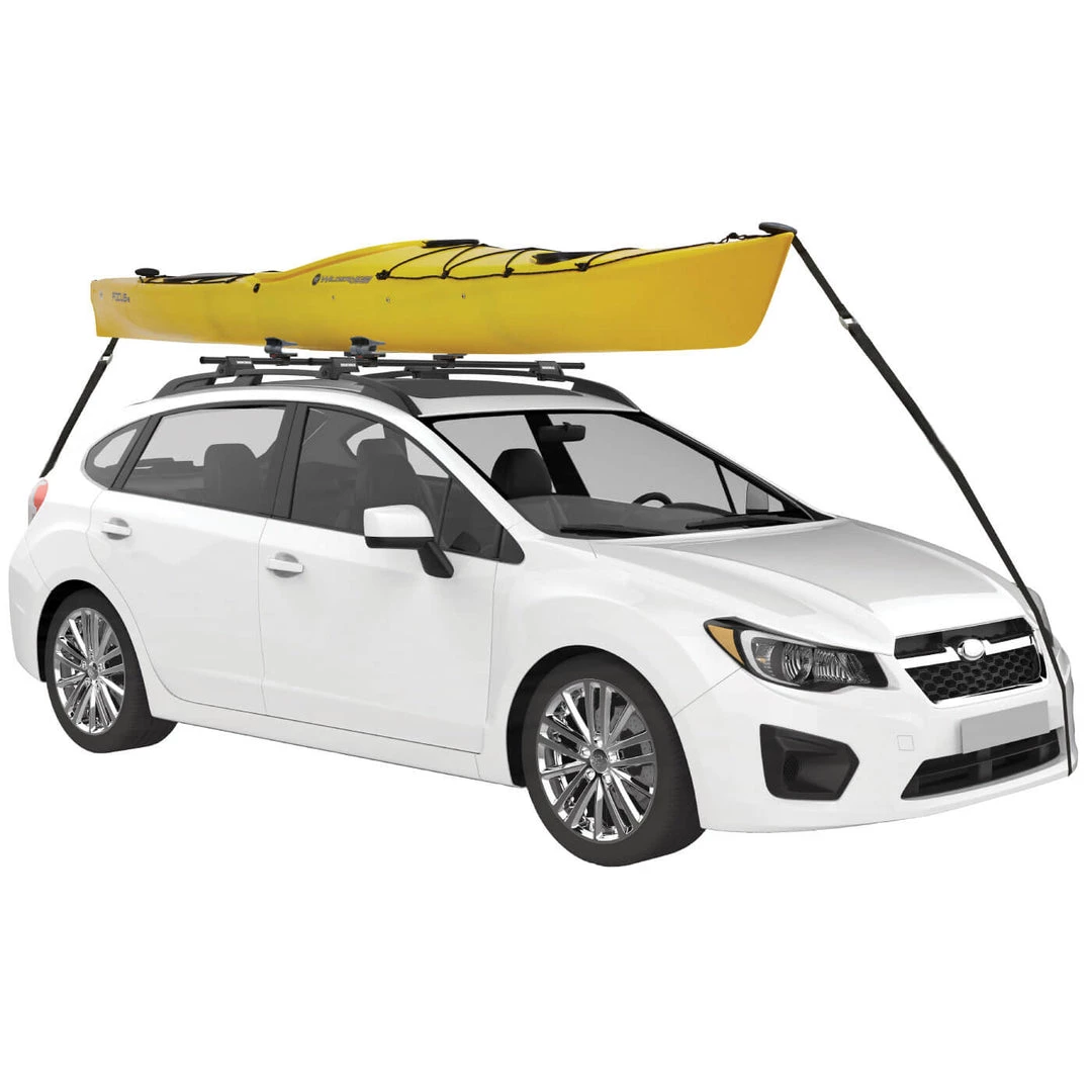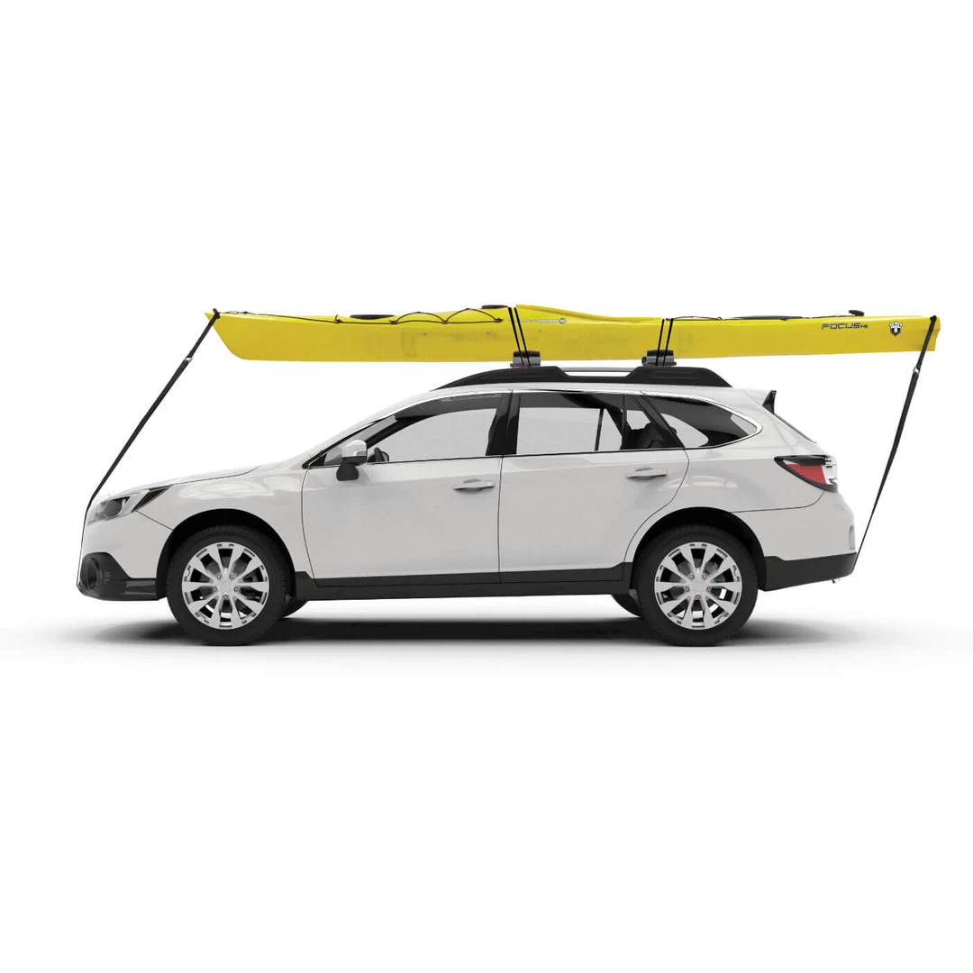 Everyone at the river will envy your ingenuity and thrifty selection of the saddle-style rooftop EvenKeel. Universal mounts fit nearly any crossbar right out of the box. And out of the box it comes with everything you need to haul your boat, including straps and bow/stern tie-downs. Sold in a set of 4.